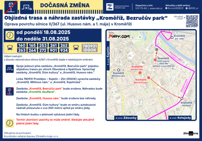Úvod > Život v obci > Aktuality > Informace o uzavírce - Kroměříž