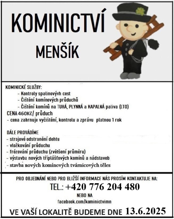 Úvod > Život v obci > Aktuality > Kominictví Menšík