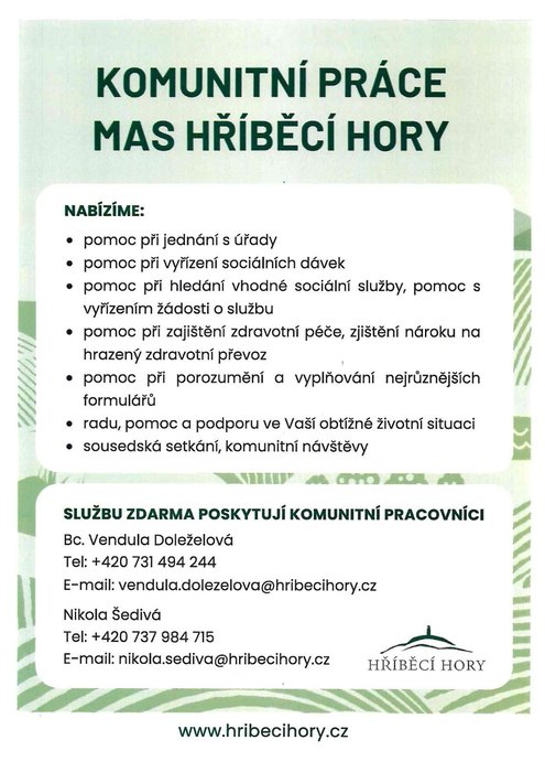 Úvod > Život v obci > Aktuality > Komunitní práce MAS HŘÍBĚCÍ HORY