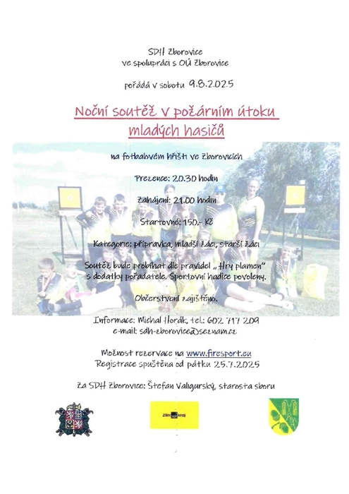 Úvod > Život v obci > Aktuality > Noční soutěž v požárním útoku mladých hasičů - sobota 9.8.2025