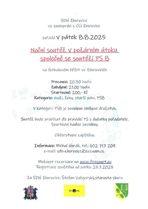 Úvod > Život v obci > Aktuality > Noční soutěž v požárním útoku společně se soutěží PS 8 - pátek 8.8.2025