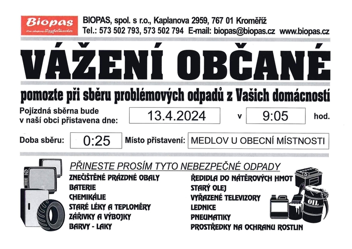 Úvod > Život v obci > Aktuality > Sběr problémových odpadů Medlov