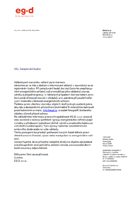 Úvod > Život v obci > Aktuality > Upozornění EG-D zateplování fasád domů
