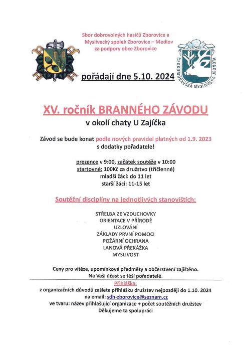 XV. ročník BRANNÉHO ZÁVODU v okolí chaty U Zajíčka