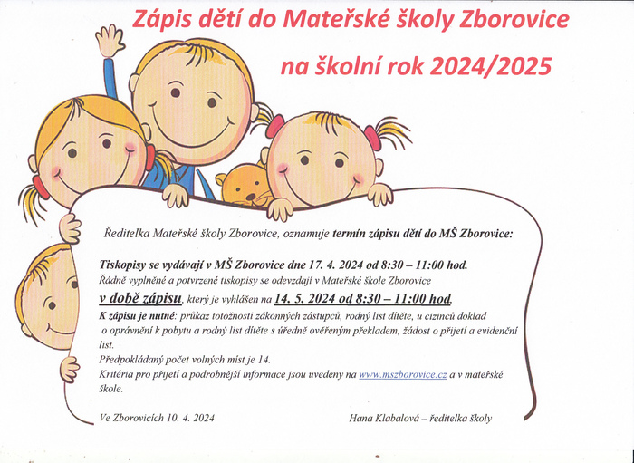 Zápis dětí do Mateřské školy Zborovice